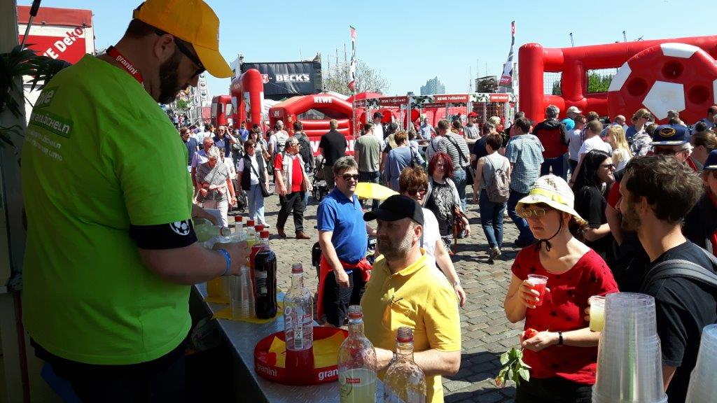 Das Team von WPS Ernst war im Rahmen der Granini „Die Limo“ Roadshow mit der bekannten Bottle-Bar zu Gast beim Hamburgen Hafengeburtstag. Alle Interessierten konnten sich an der Bar vom einzigartigen Geschmackserlebnis von Graninis „Die Limo“ überzeugen. Die Granini Lounge lud bei gutem Wetter gleich zum Verweilen ein.