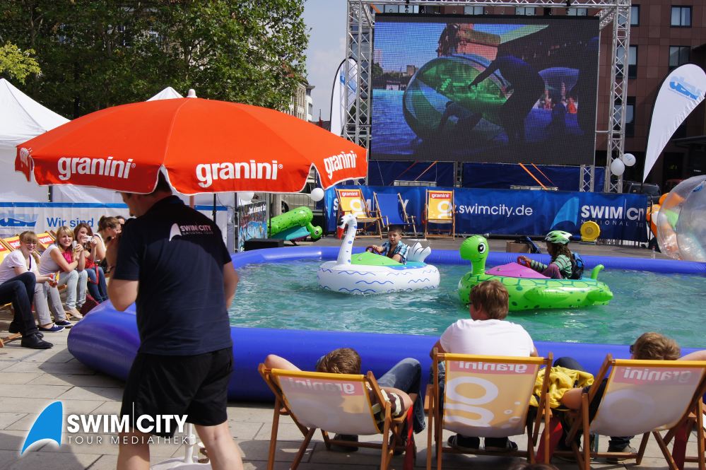 Der Toursponsor granini beauftragte das Team von WPS Ernst die SWIMCITY National Tour werbewirksam zu begleiten.