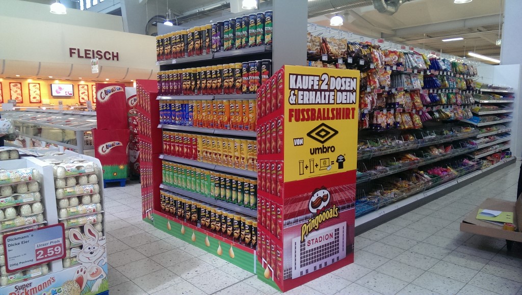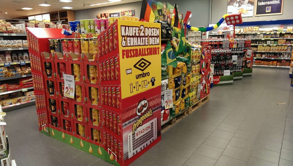Vor und während der Fußball Weltmeisterschaft in Brasilien zeigt die Kellogg Deutschland GmbH mit seiner starken Marke Pringles verstärkt Präsenz auf den Sonderflächen im Lebensmitteleinzelhandel.