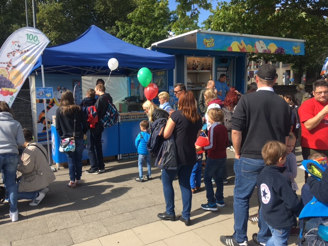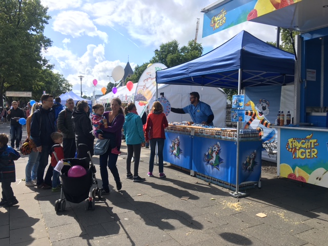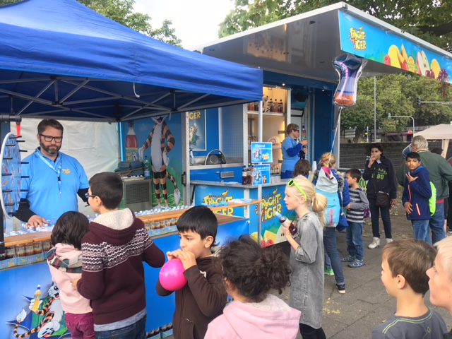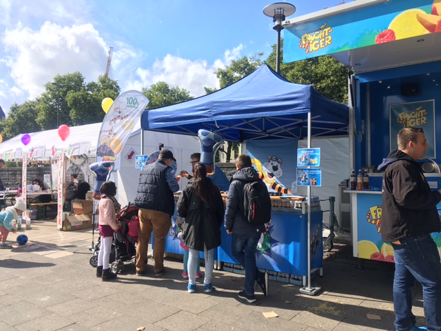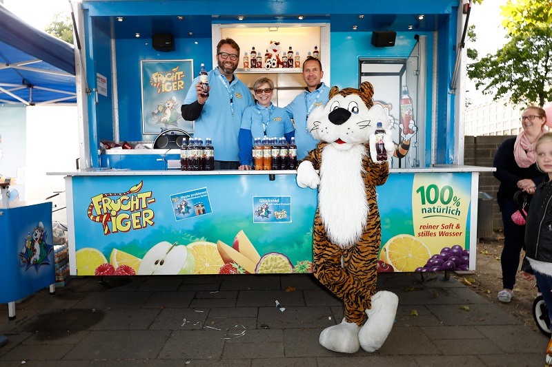 Kinder und Erwachsene konnten sich an der Bottle-Bar durch die verschiedenen Geschmacksrichtungen von Fruchttiger probieren und sich bei warmen Temperaturen mit einem leckeren Fruchttiger abkühlen. Viel Andrang herrschte am Fruchttiger-Glücksrad, das zahlreiche kleine und große Gewinne für die Kinder mit im Gepäck hatte.