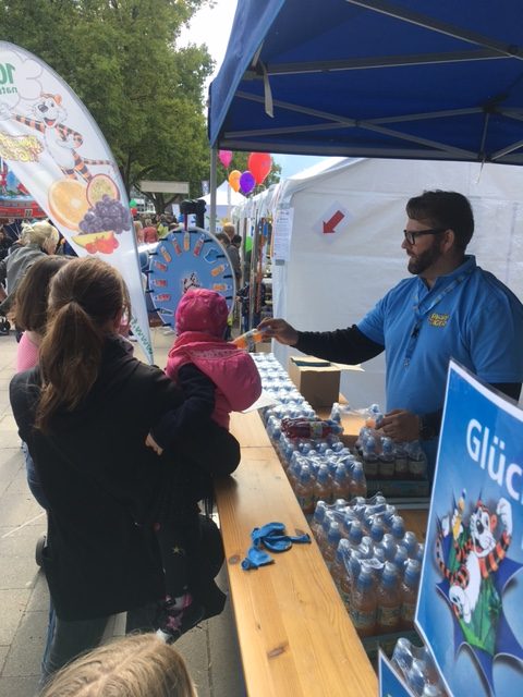 Die Eckes-Granini Deutschland GmbH ist seit vielen Jahren als einer der zahlreichen Sponsoren des Weltkindertag-Festes. Das Team von WPS Ernst war mit Bottle-Bar und dem Fruchttiger beim diesjährigen Fest dabei.
